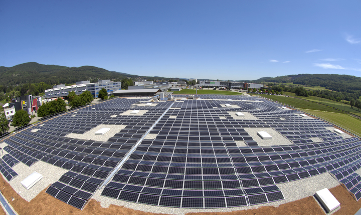 Auch wir sind unterwegs zur Energiewende und betreiben bereits 13 grosse Photovoltaikanlagen in unserem Versorgungsgebiet (Stand 1. Januar 2025). Sie erbringen eine Nennleistung von 1762 kWp (Kilowatt Peak) und produzieren 1'777'500 kWh pro Jahr. Das entspricht gut 4,4 % unseres Jahresumsatzes. Mit unserem eug ecoMix (23,3 % Solarstromanteil) können wir 395 Haushaltungen versorgen.